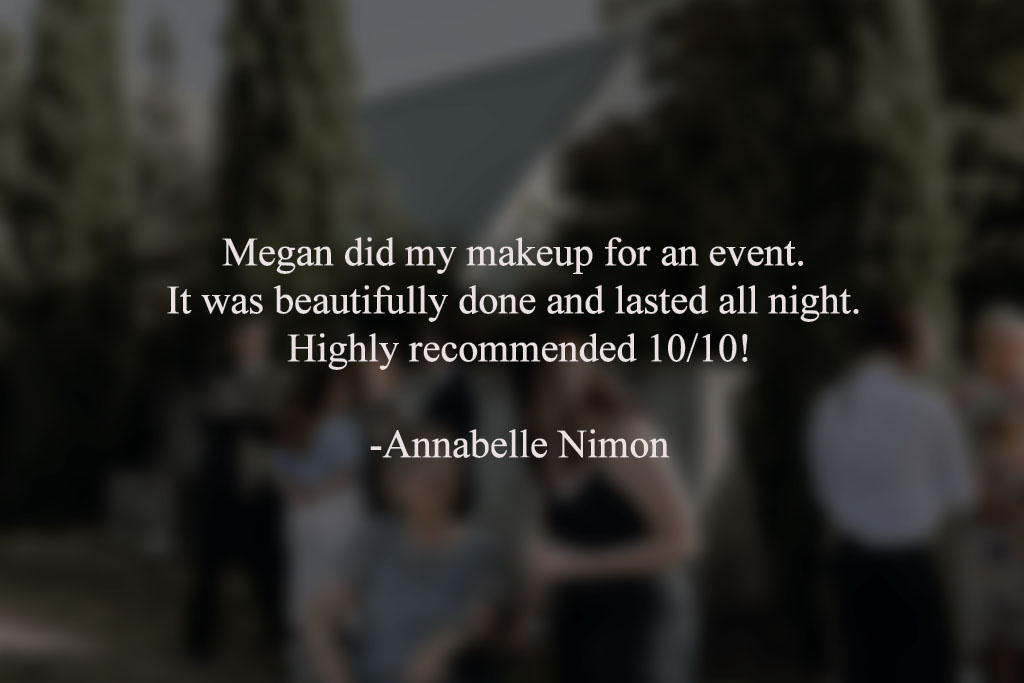 For studio appointments in Havelock North, there is no minimum booking. For on-location makeup services, a minimum booking of three people applies. Travel fees of $1.50 per km (return) will also apply. Please contact me for a custom quote for on-location services.
